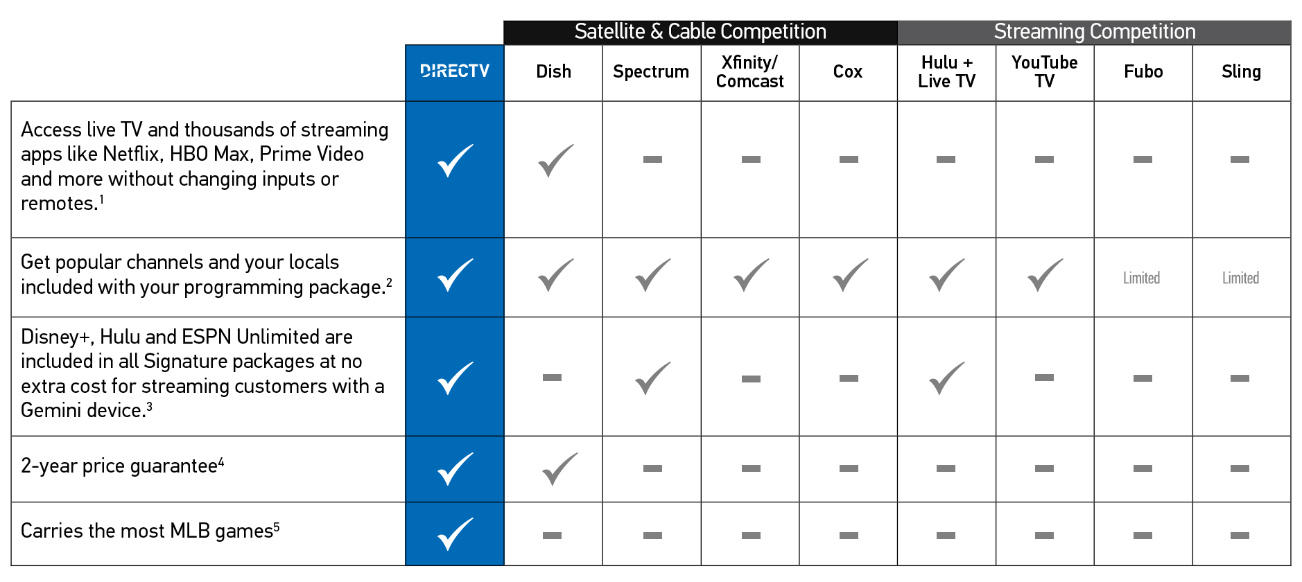 4w/eligible pkg. Must select offers. Premiums included for first 3 mos., then auto-renew monthly at then-prevailing rates unless canceled (curr. $18.49/mo. for HBO Max, $12.99/mo.; $13.99/mo. effective 2/24/26 for Paramount+ with SHOWTIME, $10.99/mo. each for STARZ and Cinemax, and $7.99/mo. for MGM+). Cancel anytime. Offer subj. to change. See details. Offer not available to existing DIRECTV or U-verse TV customers.